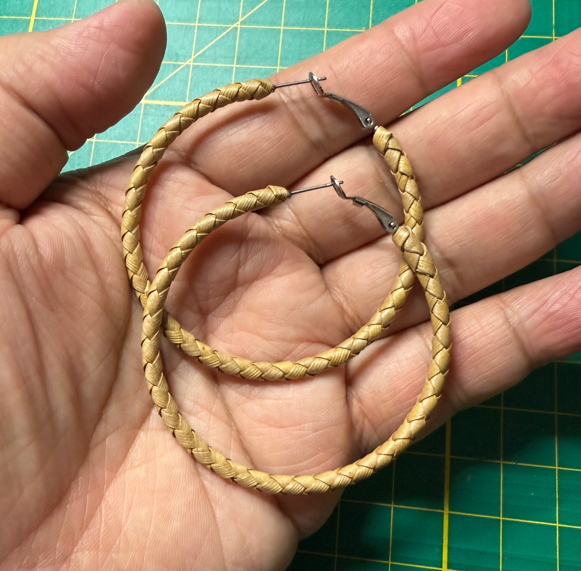 Each of these hoop earrings was carefully chosen and woven on 60mm Stainless Steel Hoops. The leaves of the puhala are from Kona Hawaii, the only lauhala I love to weave with.